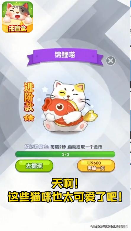 1.玩法很简单。点击盲盒救猫就能得到金币。时间有限。尽可能多次点击。