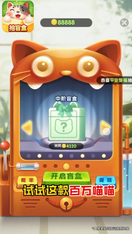 百万喵喵红包版会给玩家们带来一场极致的抽奖体验,多样的可爱动物盲盒们在游戏中一应俱全,你可疑靠着自己的运气来进行抽取,甚至还有超稀有的隐藏特典款,收集到足够多的款式还有机会获得红包。