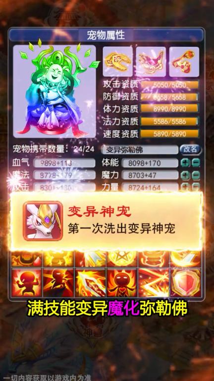 攻击技能:火焰、落石、连击、吸血等宠物技能。