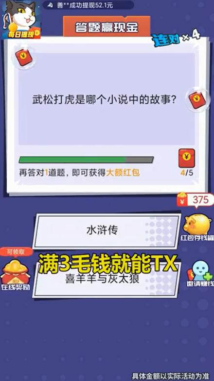 大家都喜欢答题赢红包的游戏。你准备好迎接挑战了吗?体验更刺激的冒险。
