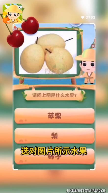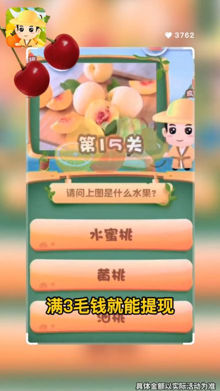 2.水果答案赚钱,每天有红包领,0.3元提现,秒到账!