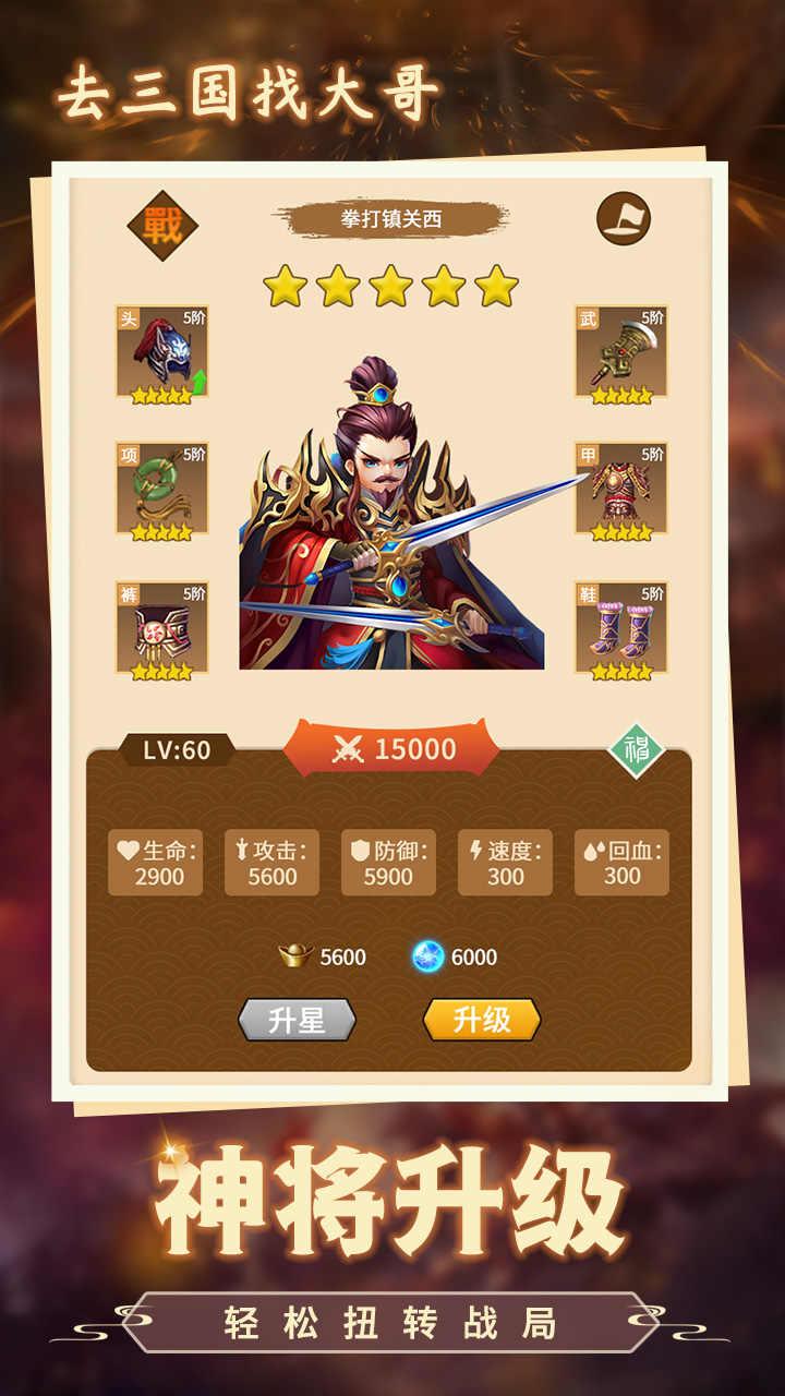 去三国找大哥游戏已经修改成了免广告获得奖励,这是一款以三国为特色的游戏,玩家需要招募许多的英雄来提高角色的实力,进行闯关来获得奖励,游戏的奖励非常的丰厚,玩法简单,可以轻松的操作,而且挂机也能够有许多的收益;