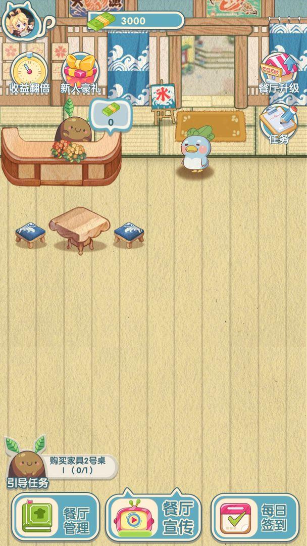 2.食堂需要满足更多客人的就餐需求,完成任务目标,收获金币,提升经营规模。