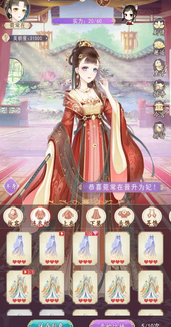 熹妃装扮免广告版带你走进古风古韵的世界中感受宫廷风格的玩法模式,你将在这里装扮你的角色在宫廷中比拼美貌,赢得皇上的爱慕,在这后宫中成功地生存下来,角色的立绘也制作的非常的精良,服饰道具一应俱全,足够玩家们发挥自己的审美能力。