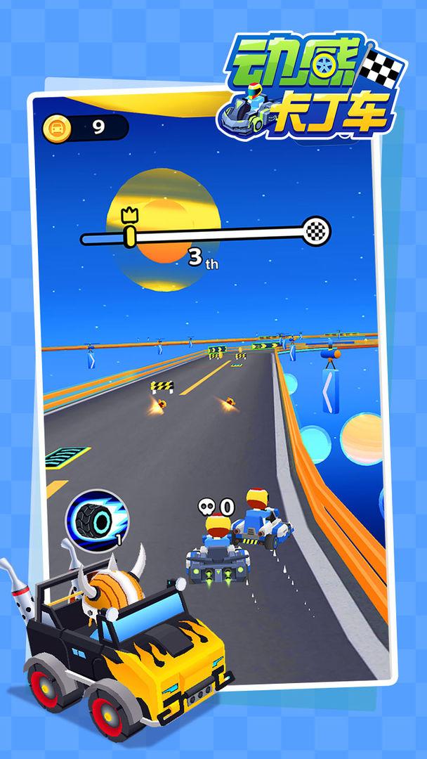 动感卡丁车是一款全新推出的赛车竞速游戏,游戏采用精美的卡通风格,延续了经典的卡丁车玩法,在这里你可以尽情的操纵赛车进行漂移,并且场景非常丰富,有普通公路、高山急弯、悬空跑道等,给你最刺激的赛车体验。
