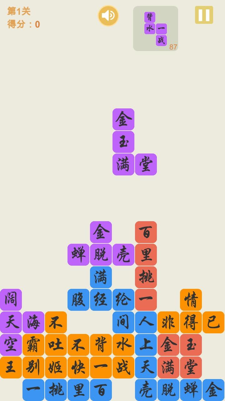 经典俄罗斯方块中融入成语单词,通过有趣的游戏获取大量成语,同时也会出现成语典故。