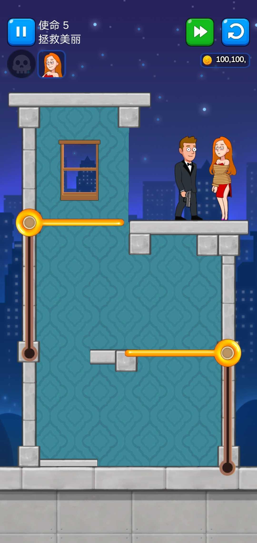 益智间谍拉动别针破解版无限钞票无限金币是一款益智闯关游戏。你心爱的女孩被绑架了,该怎么办?快动用你的智慧来解救她吧!需要用正确的顺序拉动别针,打败间谍、僵尸、木乃伊等等,解救美丽。
