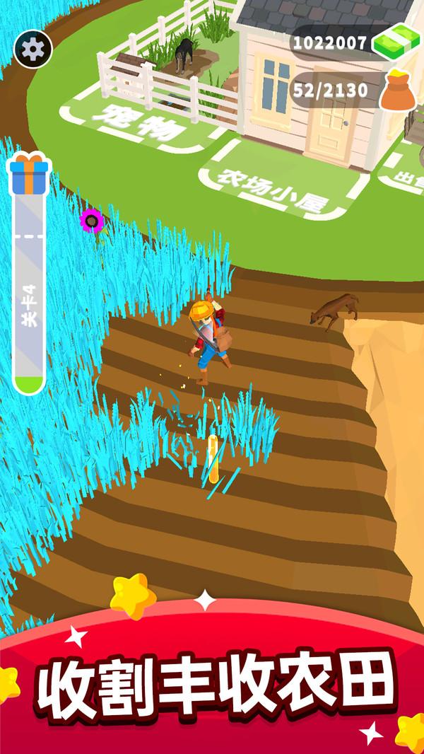 1.简单随意的模拟游戏玩法,玩家只需要完成游戏中基本的收割动作;