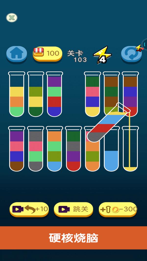 开心拼拼拼安卓版的玩法非常的简单,你需要通过不断地切换让不同颜色的试管中的色块最后全部分离变成一种颜色一个试管就算游戏闯关成功了,非常的考验玩家们的逻辑推演能力,需要动用一些小技巧才可以顺利的过关。
