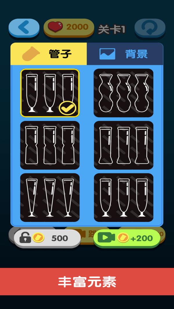 丰富的关卡挑战,单色水管按照游戏规则混合,玩法简单。