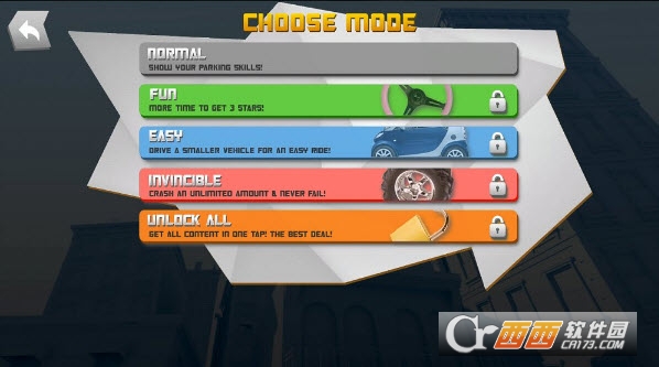 3、屋顶范围的大小都不一样,玩家要掌握在跳车前的赛车力度,不同的赛道有不同的难度。