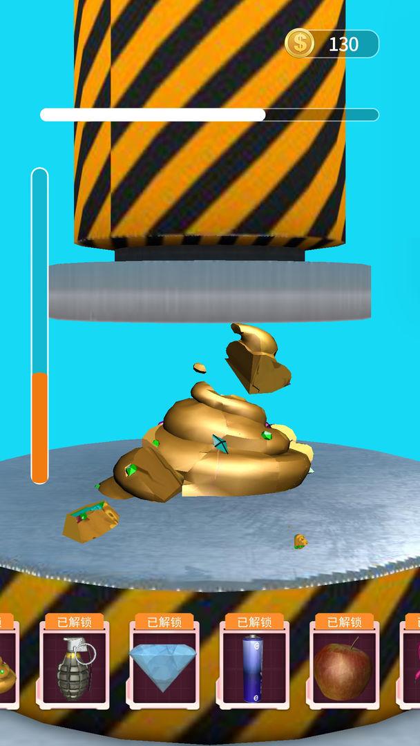 2.你可以解锁不同的物品,看到它们被你的液压机压碎!