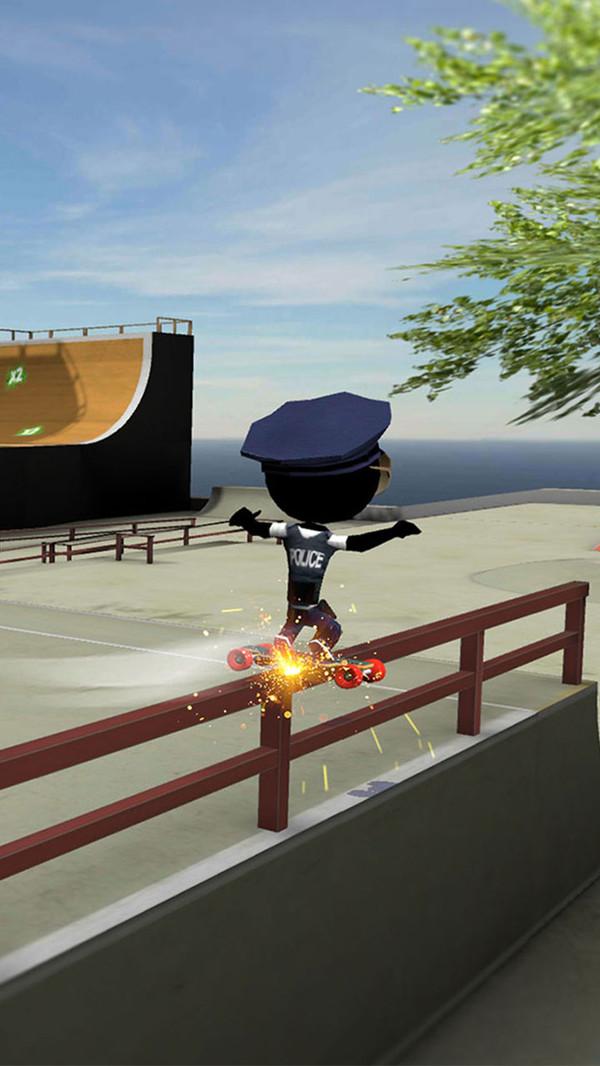 1.在这个游戏中,玩家将控制自己的卡通人物玩滑板。