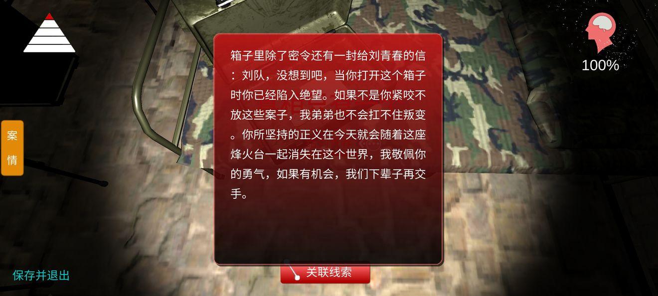 在点完“给刘青春”的信后,会有古城墙爆炸,爆炸时可利用方位感或爆炸后走向窗子那,视线长期对着古城墙,能看见刘sir视角+咳嗽声+斯科罗素=刘青春没死