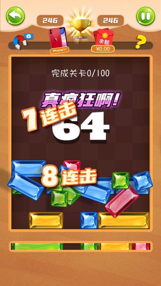 炫酷的炸屏式连消特效,多种模式道具协助你闯关,闯关成功还有丰厚的红包奖励。