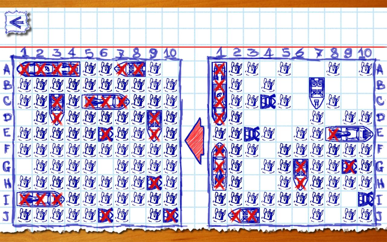回合制一次一人可以打一次,如果打中,会以一个位置的红点标出,若没打中就会以“X”的标识转对手。接着按照图样去猜测剩下战舰的其余部分,只要打中就可以连步,一旦打空我方回合就结束换对方。