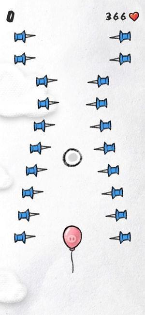 游戏采用无尽式游戏模式,玩家需要不断的照顾气球向上飞,更需要不断的进躲避障碍物。