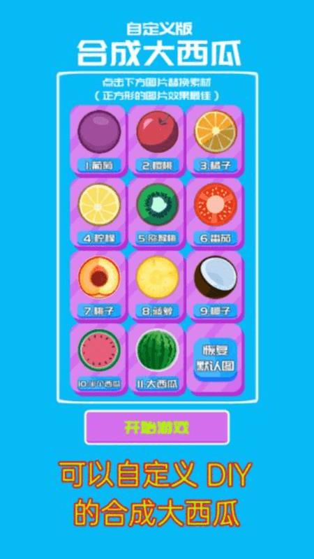 自定义版合成大西瓜大家最期待的版本来了。还是熟悉的合成玩法,首创的自定义素材包含超多的自由DIY西瓜素材,还可以换成一大推的猫片等,绝对让您可以感受一次前所未有的全新合成乐趣玩法体验,超魔性好玩,来与您的小伙伴们一同分享体验吧。
