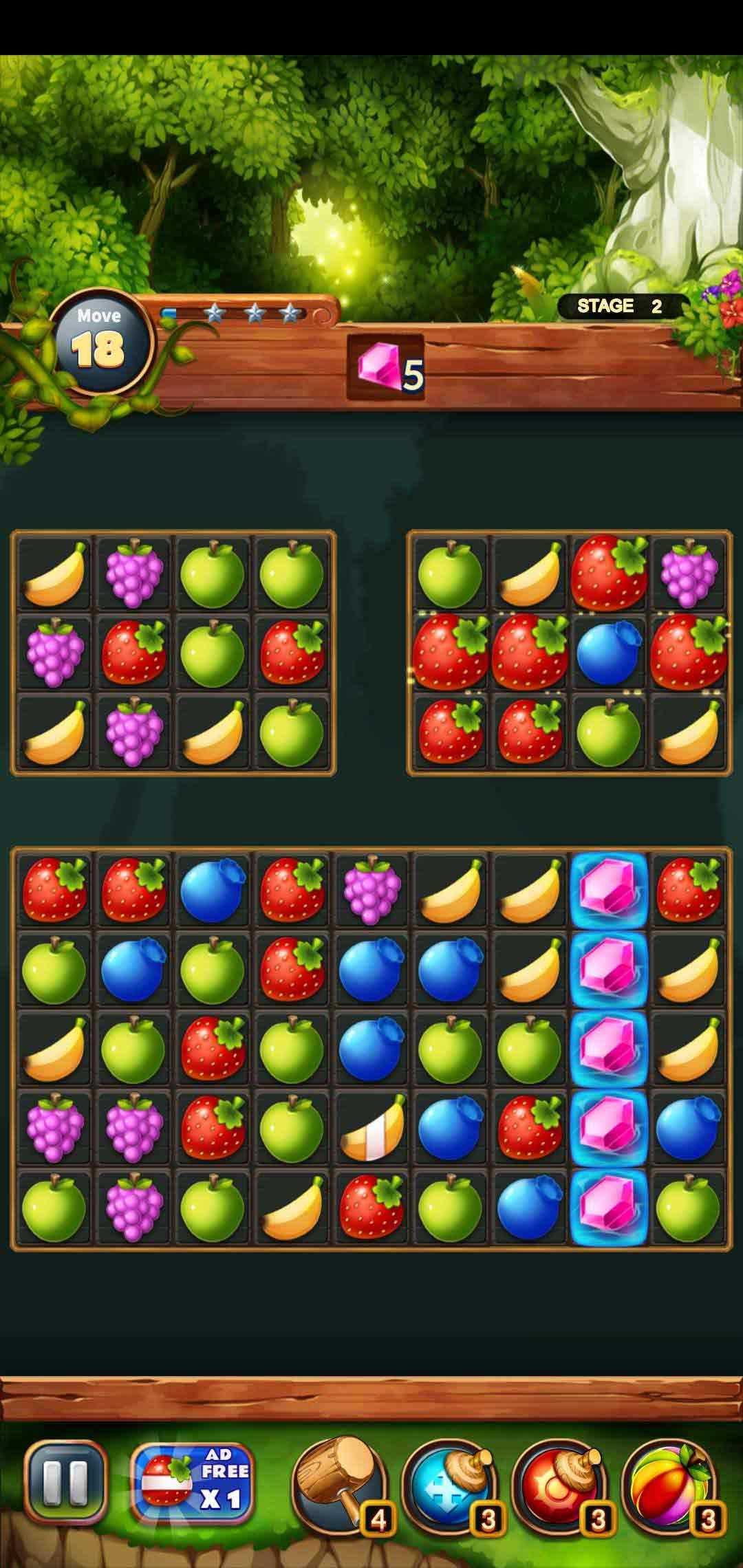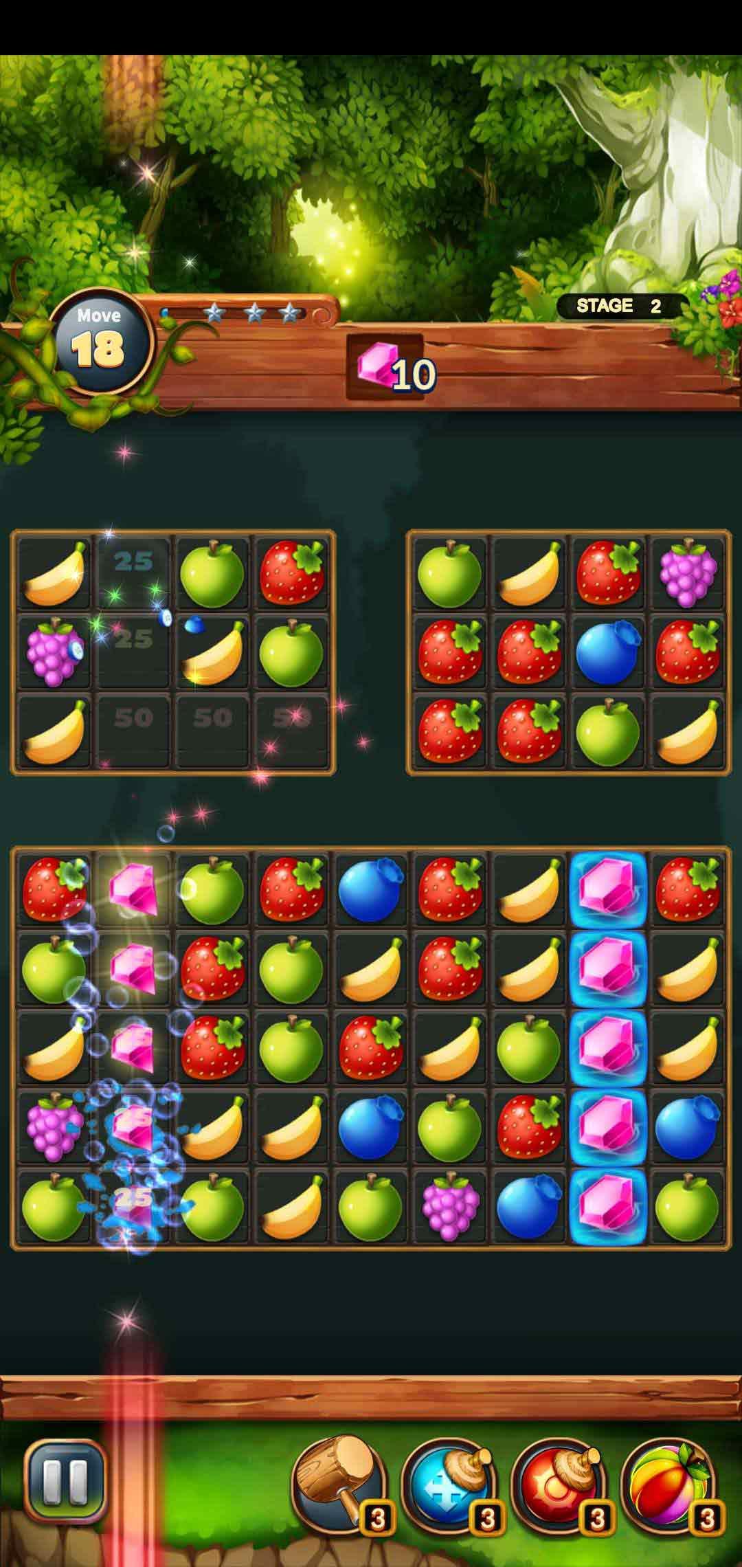 3、移动并匹配3个或更多相同颜色的水果。清除所有的动态层次清除所有的动态层次,体验华丽的效果
