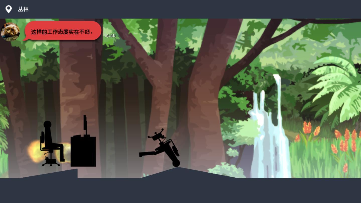 不想上班的情景对话是非常有意思的,无论是画面还是画风都是非常鬼畜的,非常丰富的场景模拟,不断的向前冲,前进的道路是充满危险的,但是老板在后面追,你不能停下来,只有不断的前进,玩法是非常简单的。
