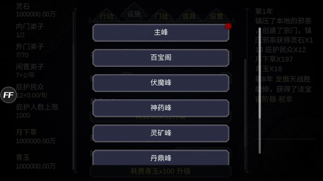 建造各种建筑,增加弟子的数量并增加宗门的收益来源,扩大宗门规模