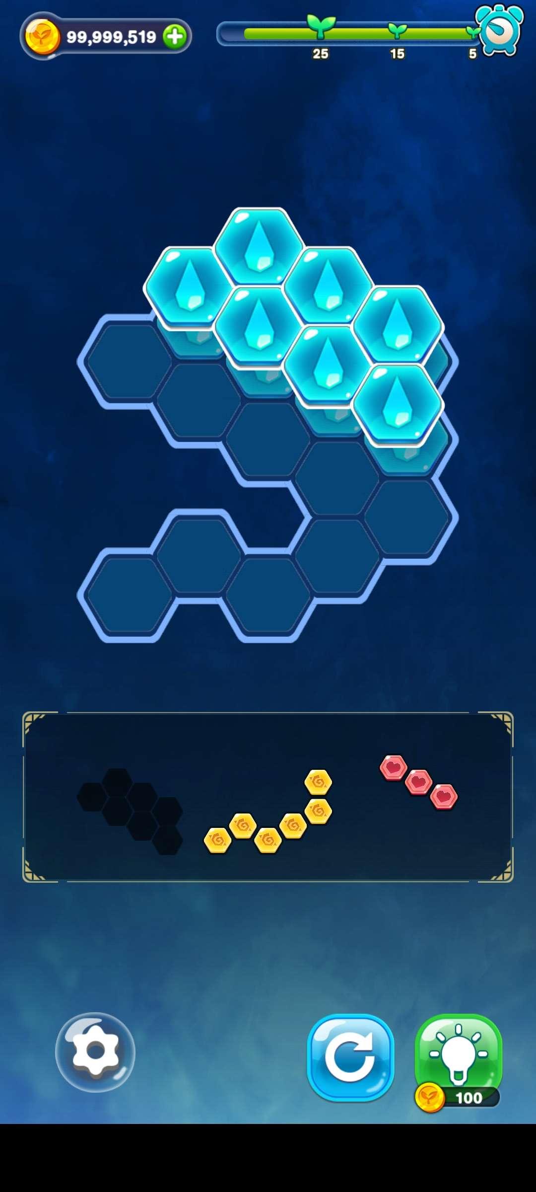3、你还能点击刷新指定的方块形状,找到更加完美的形状轻松的过关。
