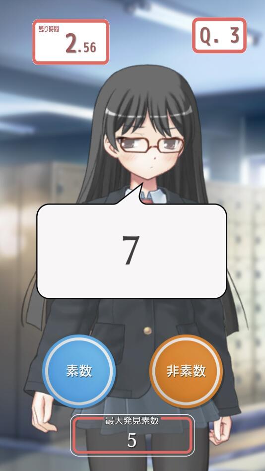 素数是指在大于1的自然数中,除了1和它本身以外不再有其他因数的自然数,在素数女孩这款游戏中,玩家需要根据女孩给出的数字来快速判断这个数字是不是素数,看看您一共能够得到多少分,如果答错了,女孩会帮您分析出来,有助于玩家充分的了解数学中的素数特点;