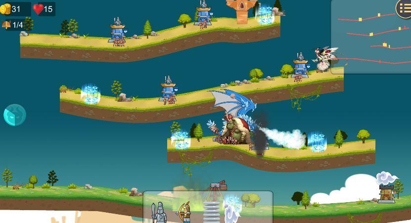 玩了一会儿,刚过5关,主升的近战塔和弓箭塔。