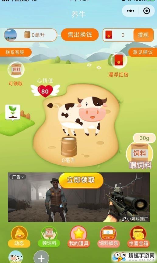 2、每天上线完成任务,喂养饲料,开垦更多土地,扩建你的养牛场;