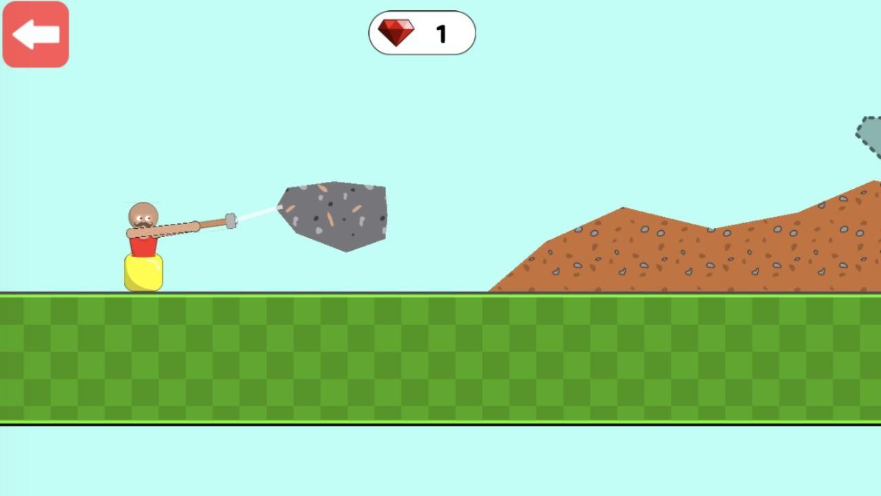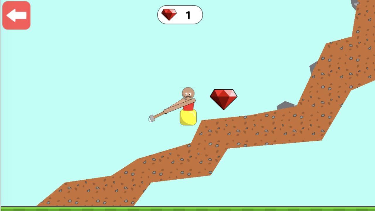 1、玩家控制一个坐在似乎是缸里的人,用一把榔头不断往上爬,操作极其简单;