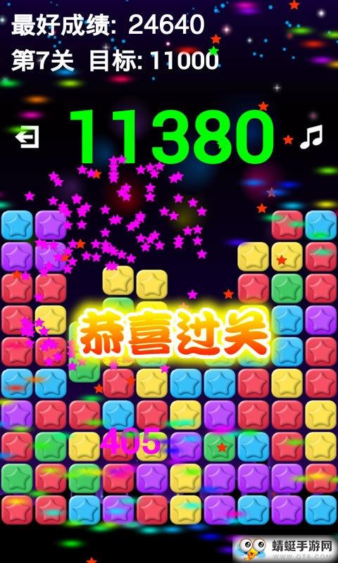 1.游戏主要的玩法就是三消,将三个相同的星星连接到一起就可以消除了;