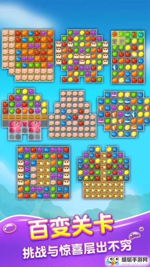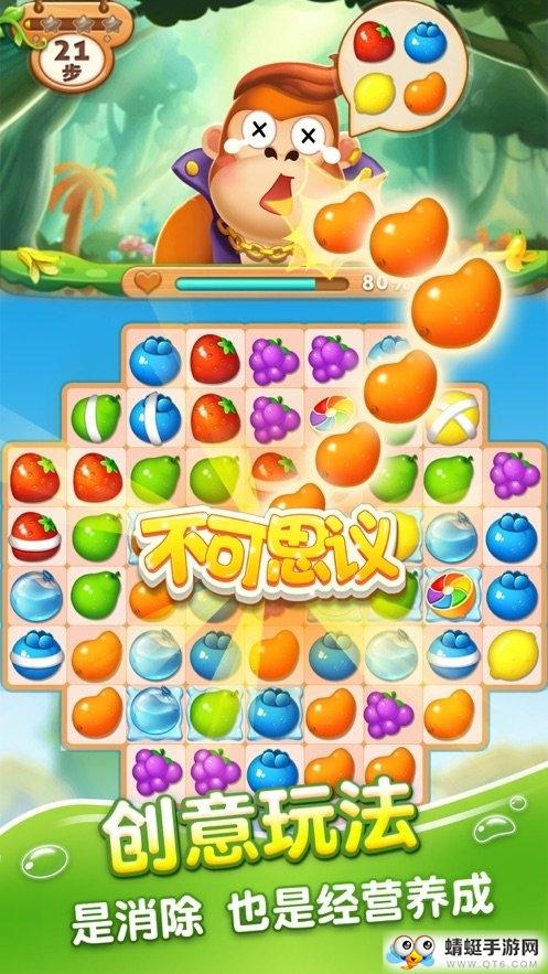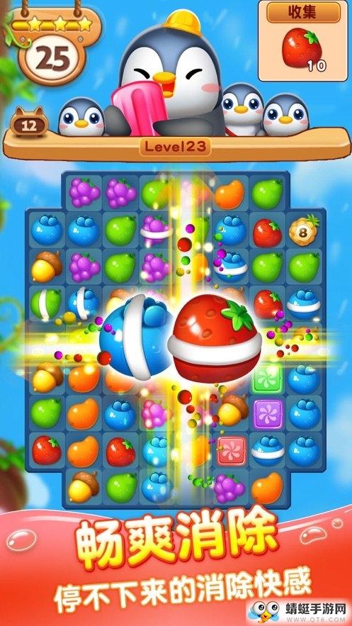 1、让人停不下来的趣味消除游戏,丰富的关卡挑战,细心观察相同的水果进行消除;