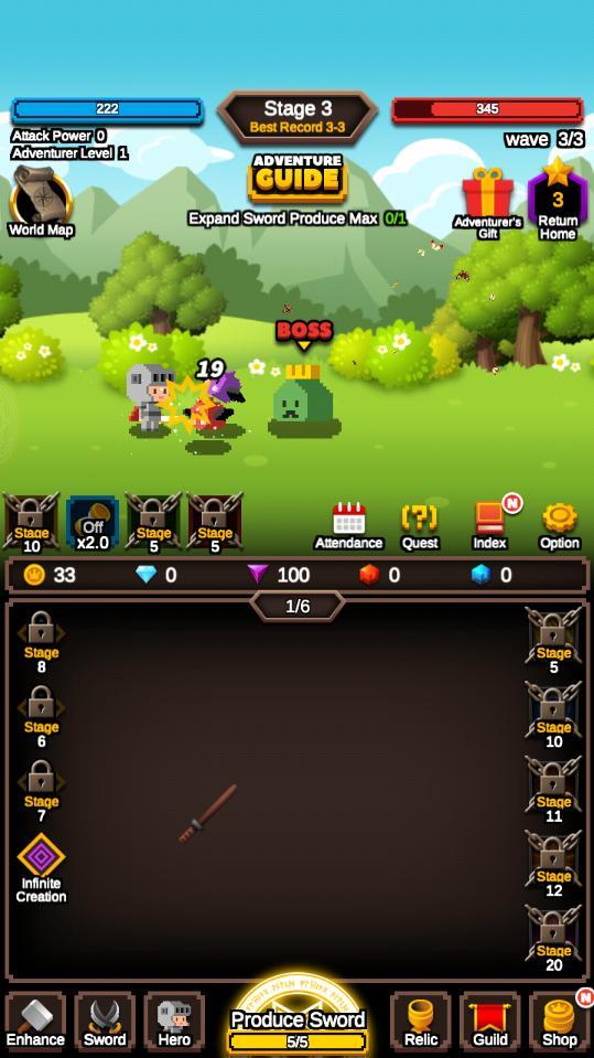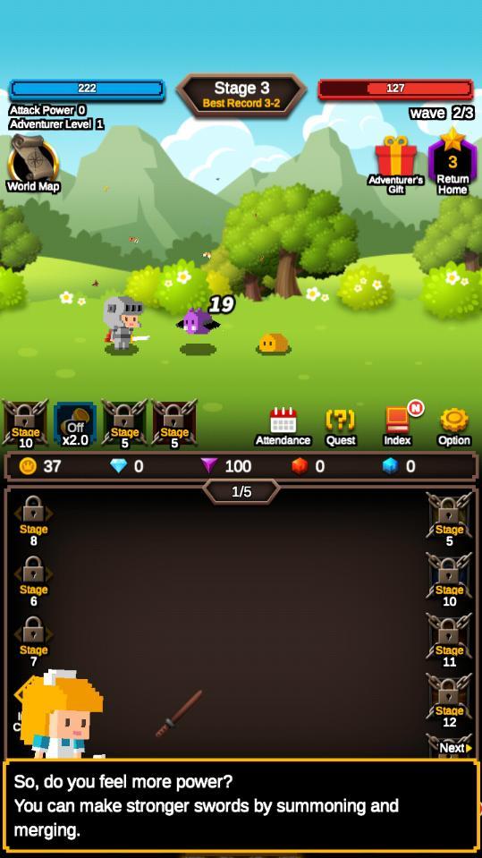 1.召唤并合剑摧毁敌人的波浪!举起无穷无尽的剑,你的冒险家将变得更加强大!