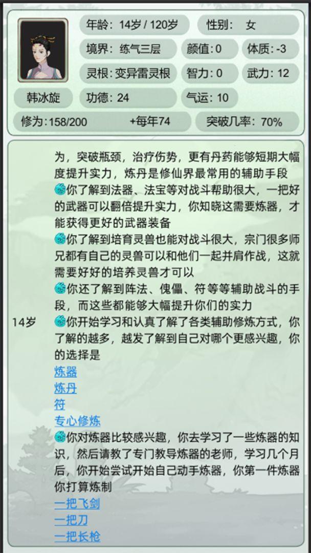 可以自己起名字,选择性别,还有随机头像库,充分实现修仙个性化(你出生的孩子会随你姓哦)