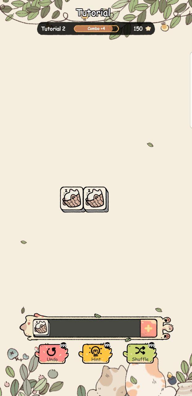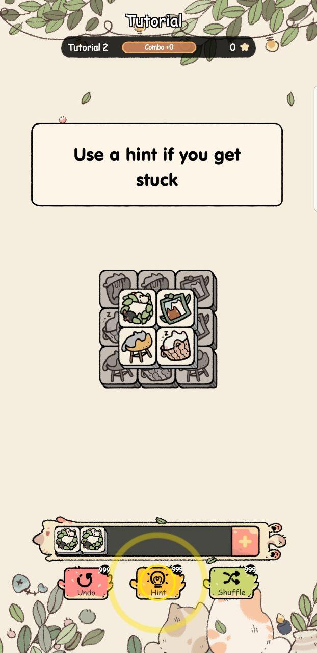 1.找到并点击3个相同的瓷砖,并把它们放在底部的猫盒。