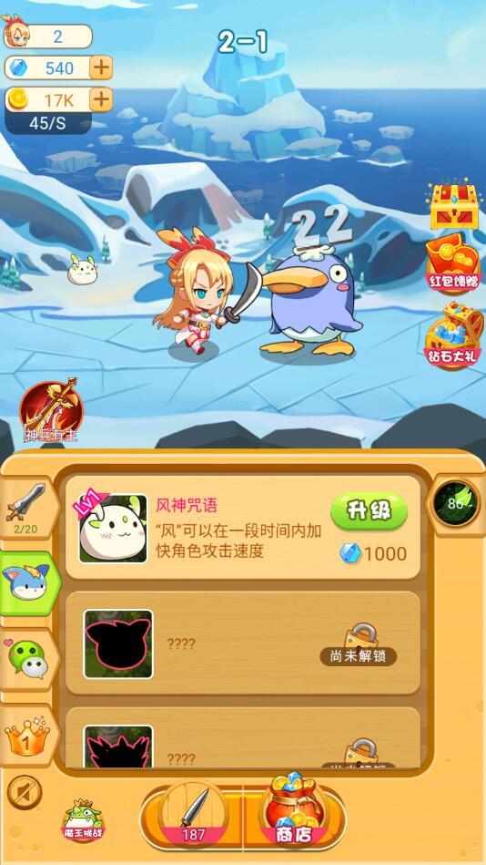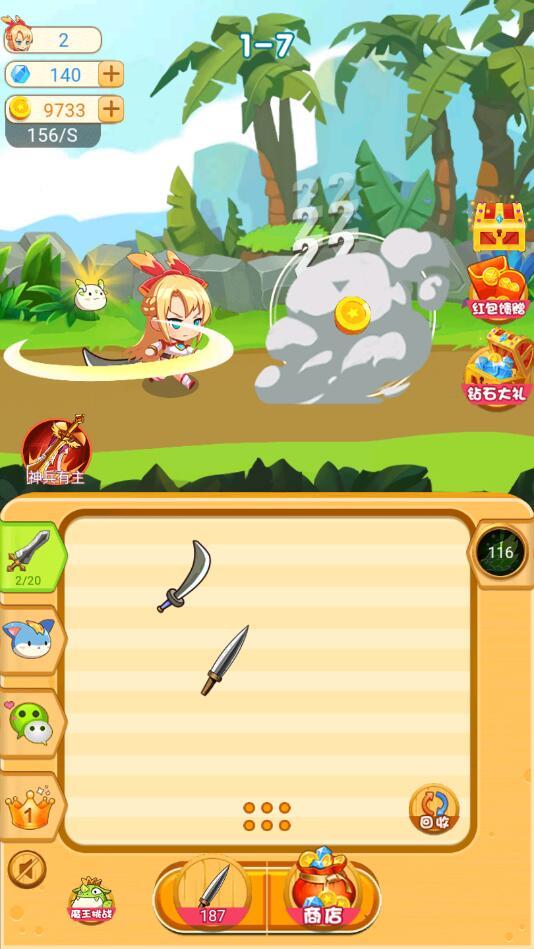 神兵传奇无限挂机游戏修改成了免广告获得奖励,这是一款很轻松的点击合成放置挂机游戏,玩起来没有难度,就是合成武器快速点击屏幕与怪物战斗,等级越高的武器伤害力也越高,还有宠物系统,可以让帮助您更快的去击杀怪物;