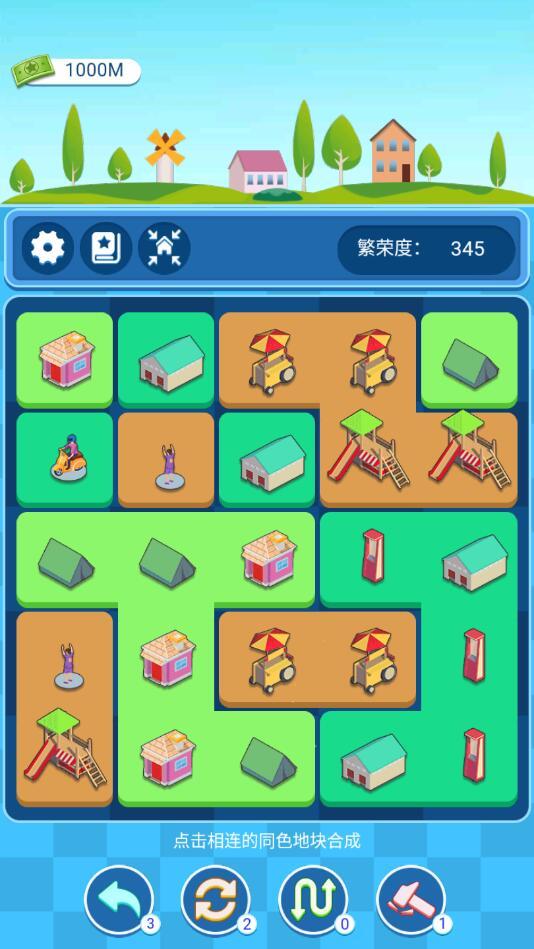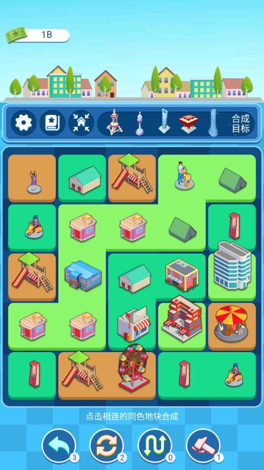 建筑越先进,你能获得的利润越多。合成相同的建筑以获得更多的建筑。