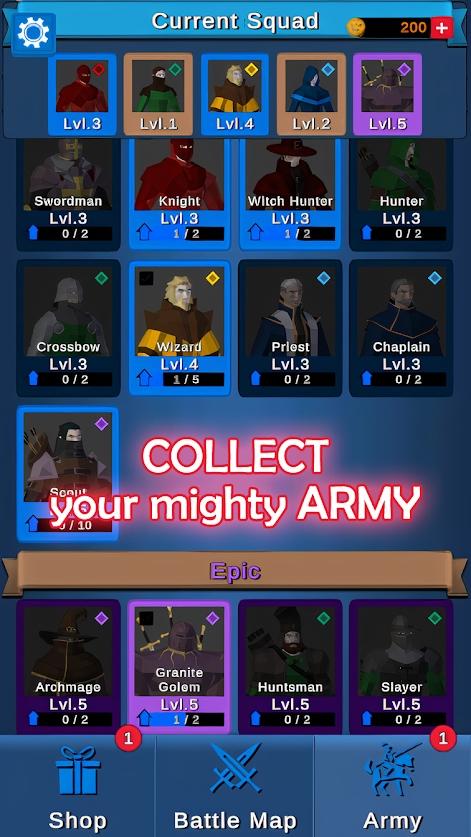 3.招募和升级士兵,组建团队,帮助你征服整个大陆。