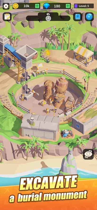 这款游戏是一款新颖的模拟经营类型的游戏,玩家将身临其境的在游戏的世界里体会到考古探险的乐趣。