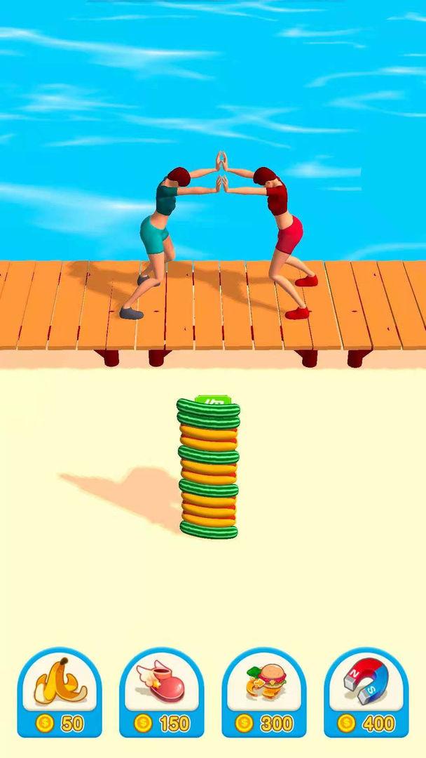 2.不断拿起食物汉堡,然后靠近胖姐姐,和他一起赢;