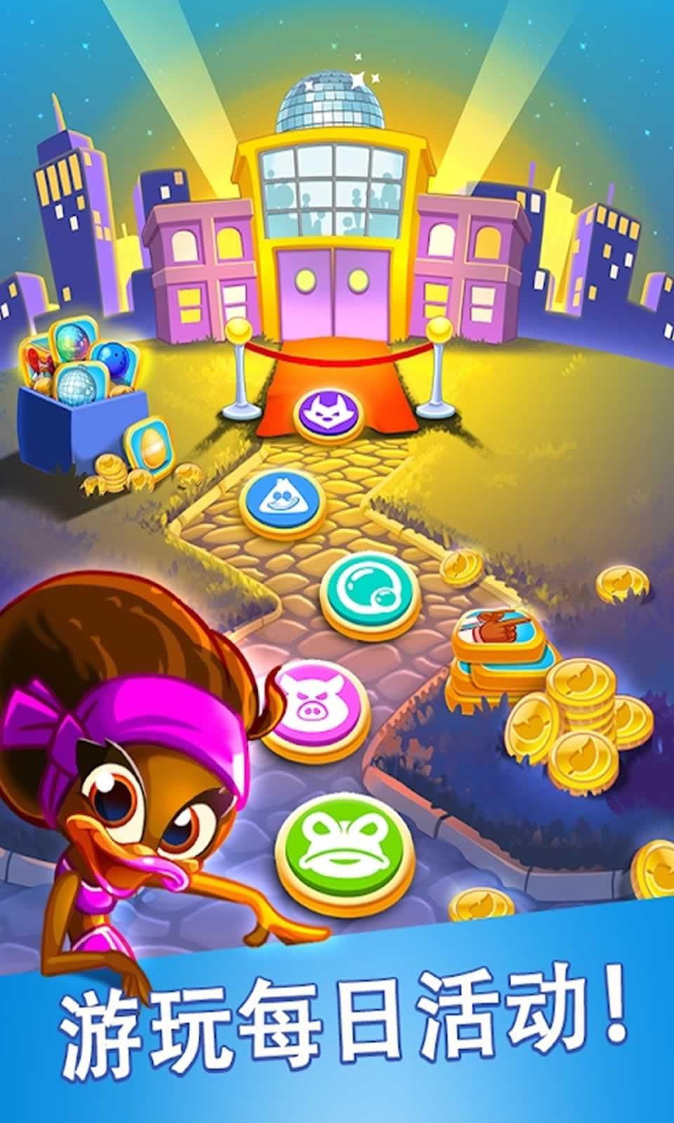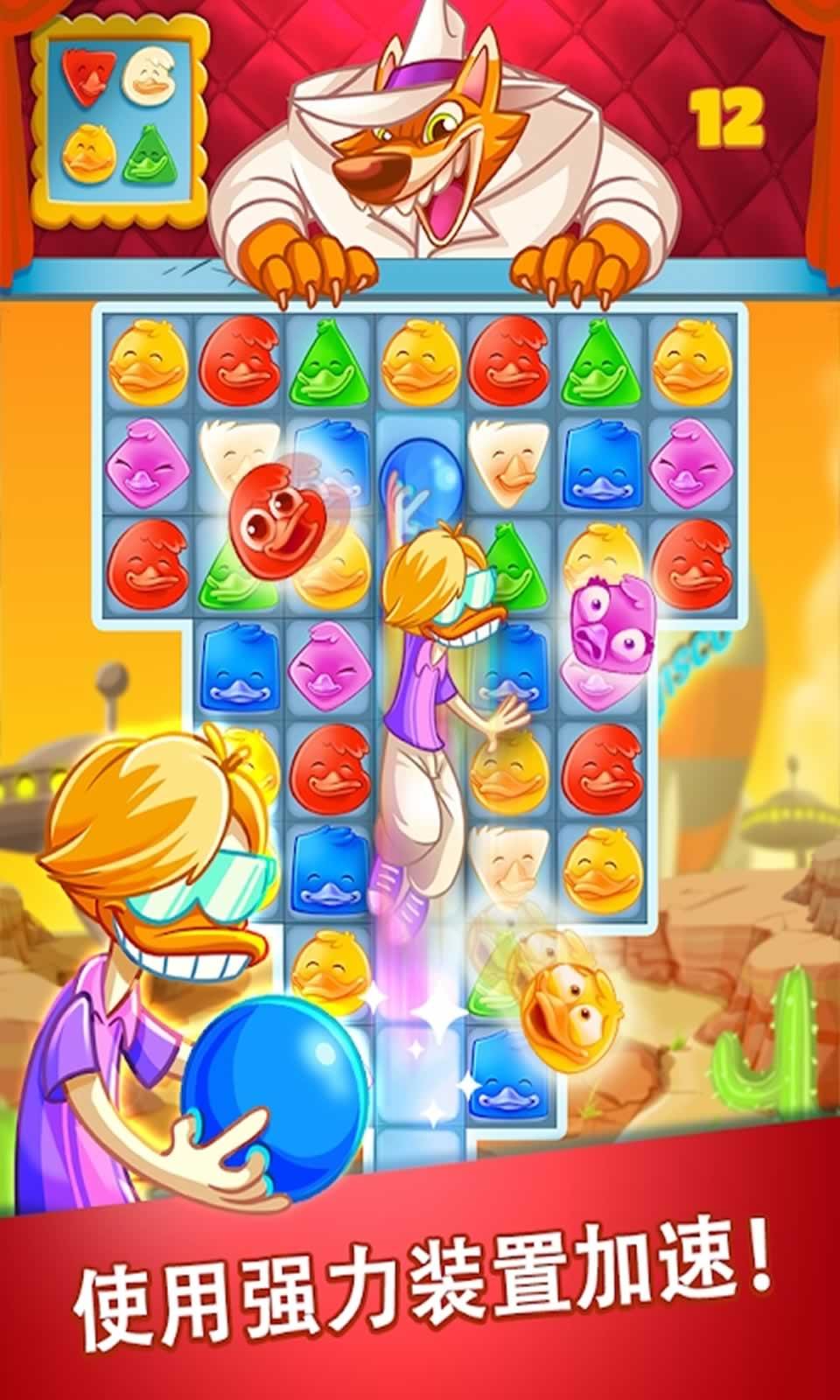 迪斯科鸭子是一款关于益智消除类型的冒险闯关游戏,在这款游戏中,玩家将会面临着大量的关卡,不同的关卡会有不同的难度,玩家需要一一挑战,极具挑战性。游戏中会有大量的游戏道具,这些道具能够帮助玩家快速进行通关,获得大量的奖励。游戏采用十分可爱的卡通画风,场景布置十分的精美,给玩家极大的游戏乐趣。心动了吗?还等什么?快来下载试玩吧!