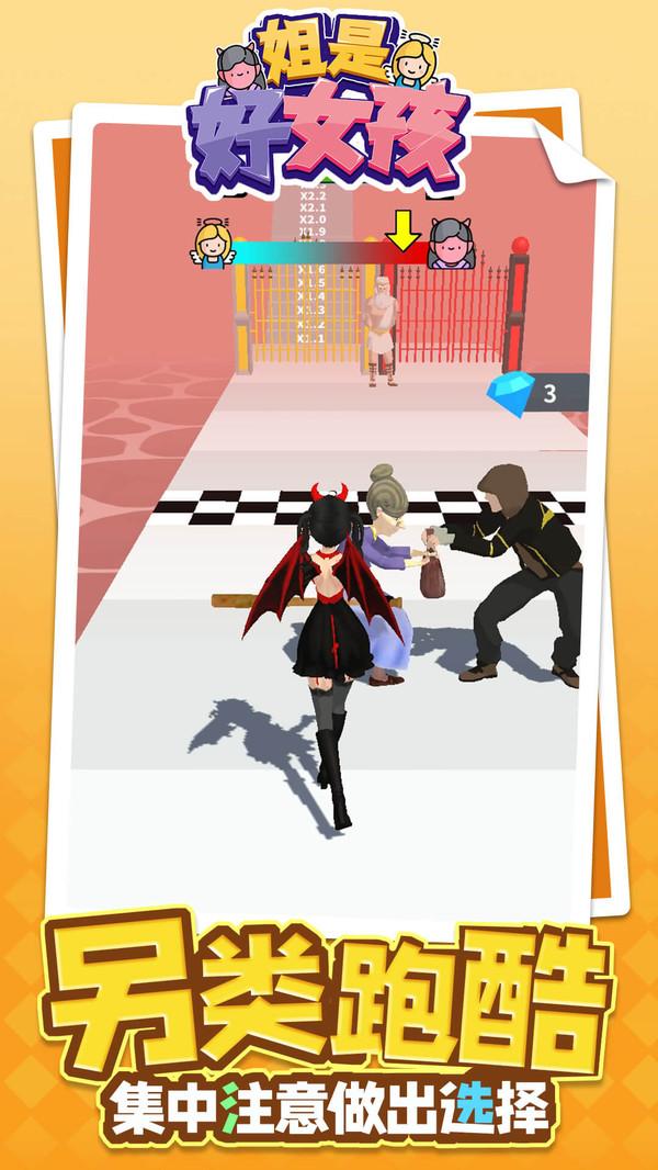 姐是好女孩安卓版,游戏中我哦们需要控制漂亮的女主角进行关卡的闯关,关卡的中途会有很多的好事情和坏事情选择,你做的好事善事越多你就会受到天使的加护,反之就是恶魔的装扮,一切都在于你自己选项。