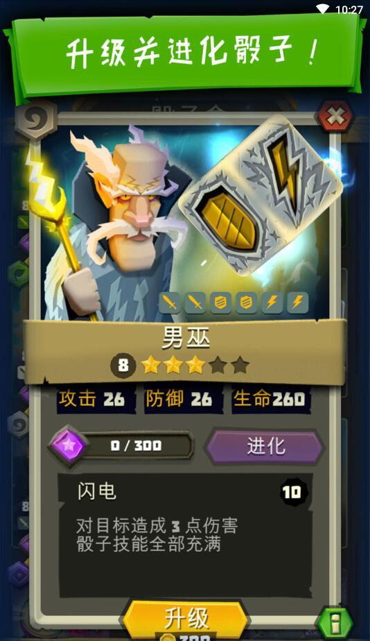 升级骰子会增加攻击(ATK),防御(防御)和健康点(HP)的骰子值,使团队有能力给予、转移和维持伤害。不断发展的骰子赋予骰子一颗星(evo step),最多可达5个。每一个evo步骤都提高了骰子的技能,要么让技能更强大,更快地充电,要么给它一个初始电荷。此外,每一个evo步骤都可以给ATK、DEF和HP提供一个可观的奖励:明星|奖金- - - - - - - - - - - - - - - - - - - - -2 | 25%3 | 75%4 | 150%5 | 250%通过使用黄金(或钻石)来达到平衡。进化需要切成碎片。骰子碎片可以从掷骰子(gacha)获得。