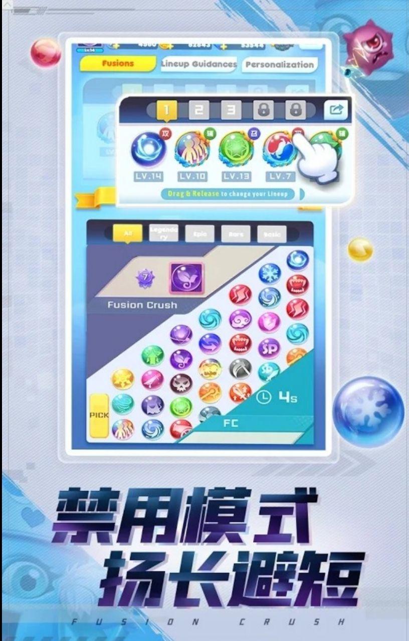 通过不同的游戏模式,以全新的方式体验Fusion Crush。融合组合粉碎对手。和队友一起寻找合作模式的终极阵容,或者在随机竞技场选择骰子的时候测试自己的运气。
