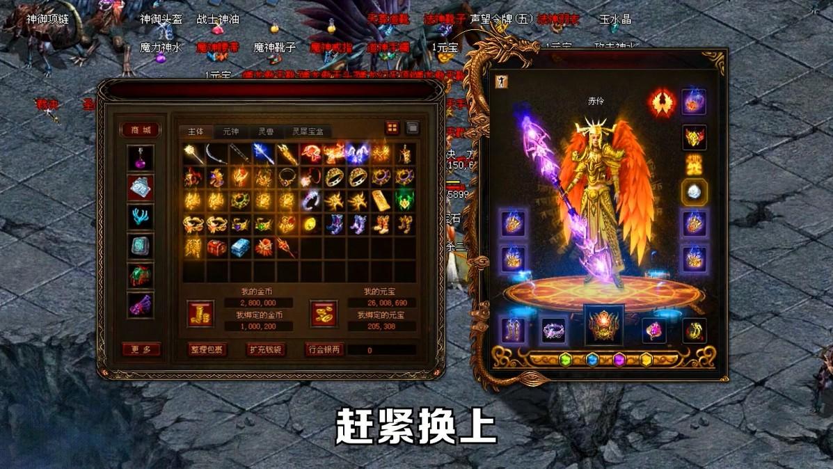 2、挂机爆神装,小怪出终极,装备上架秒回收,极品在线兑,惊喜更是多多,超变神装上线就送。