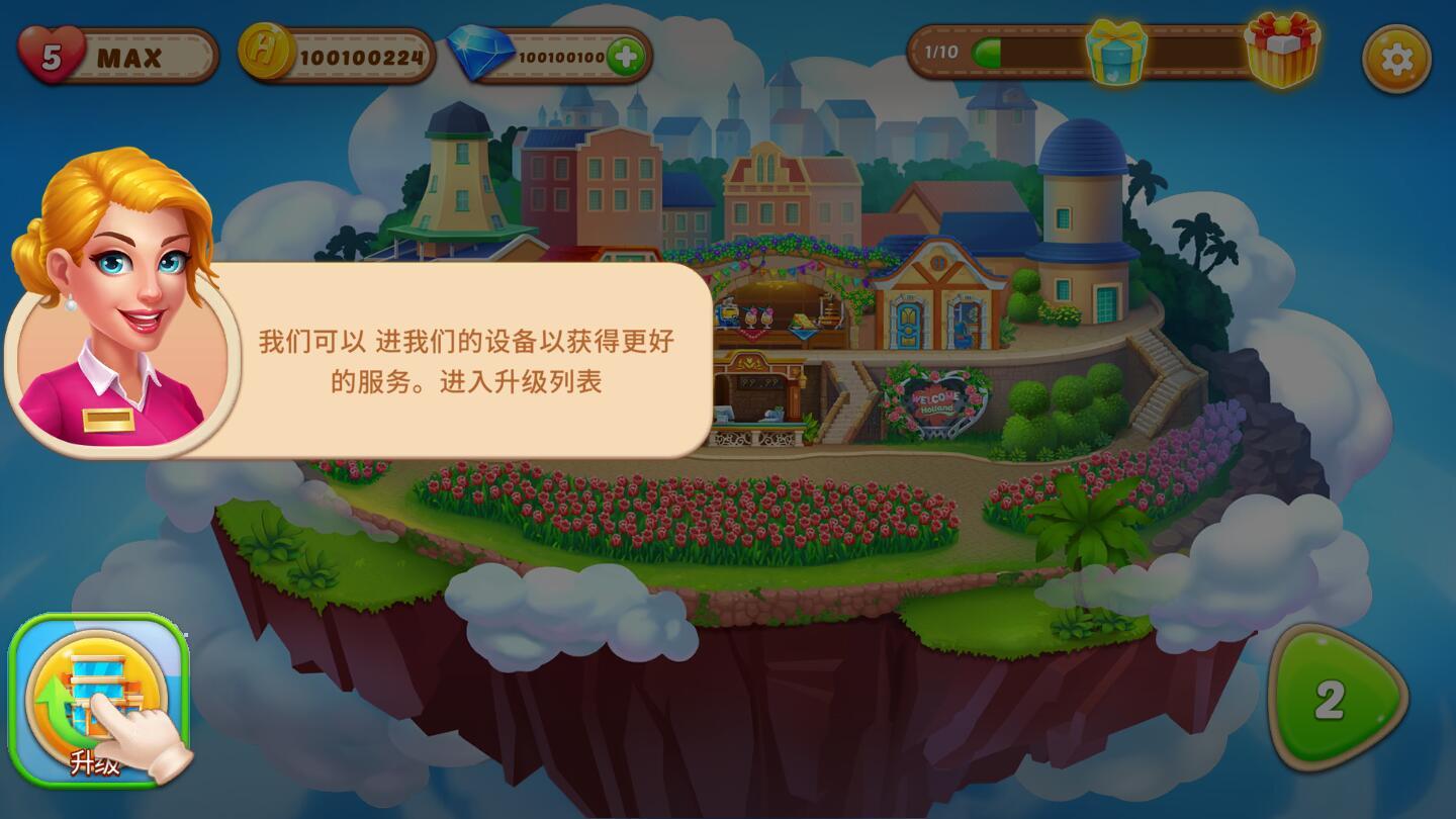只要有足够的钱和宝石,就可以升级您的酒店,厨房电器,食品服务,家政服务...