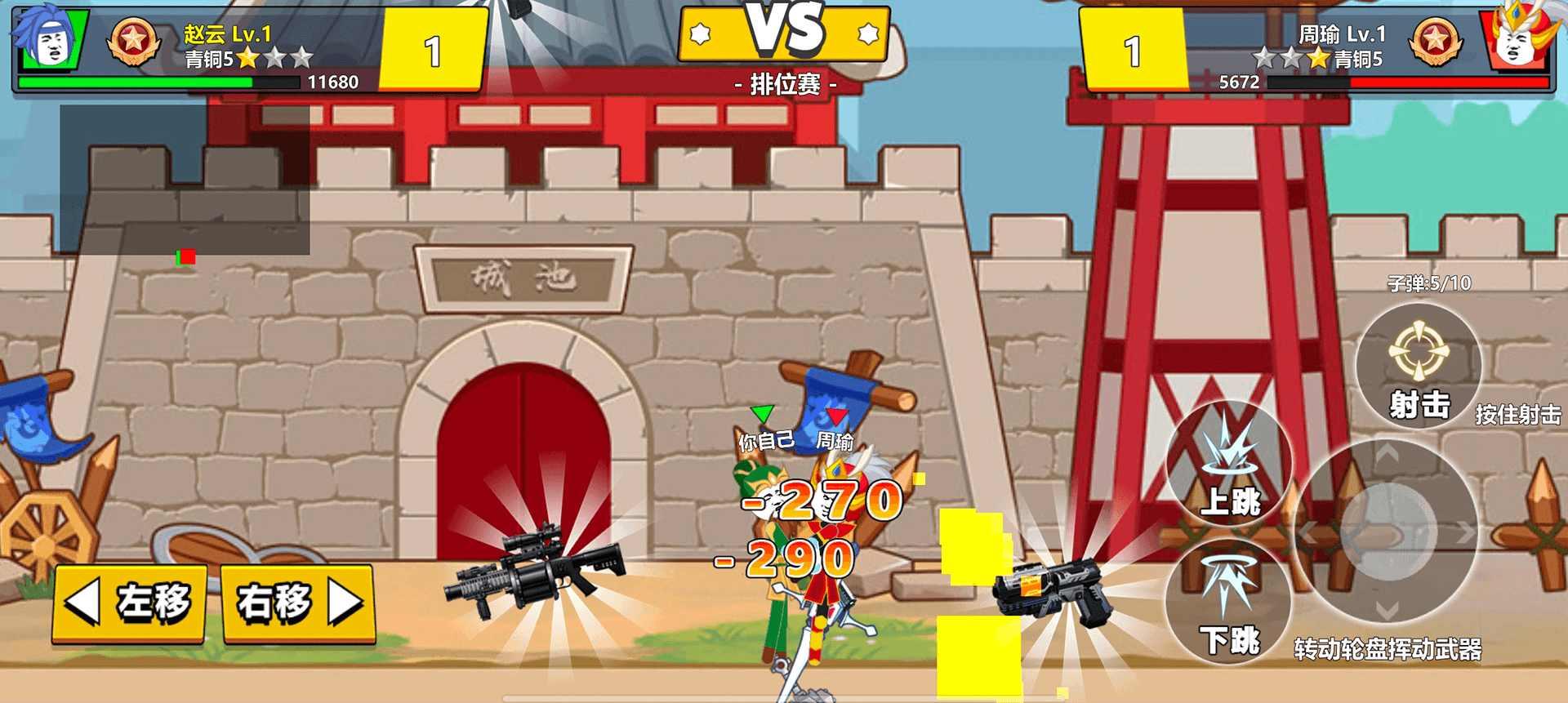 5、不仅加入了全新的虚拟按键,包含了跳跃、射击、闪躲等特色操作模式,同时还有更加搞笑的表情包元素加入。