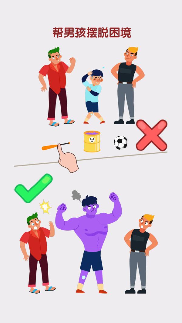 游戏的玩法还是非常的简单有趣的,老少皆宜的上手难度,主要的特色还是在于多样有趣的关卡闯关模式,你需要不断地进行各种脑洞解放才能get到游戏关卡的关键。