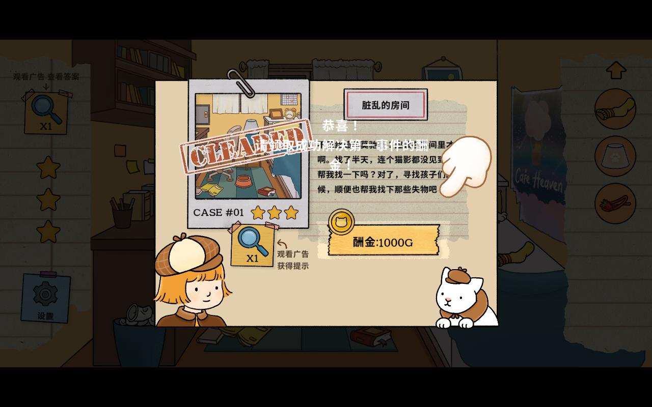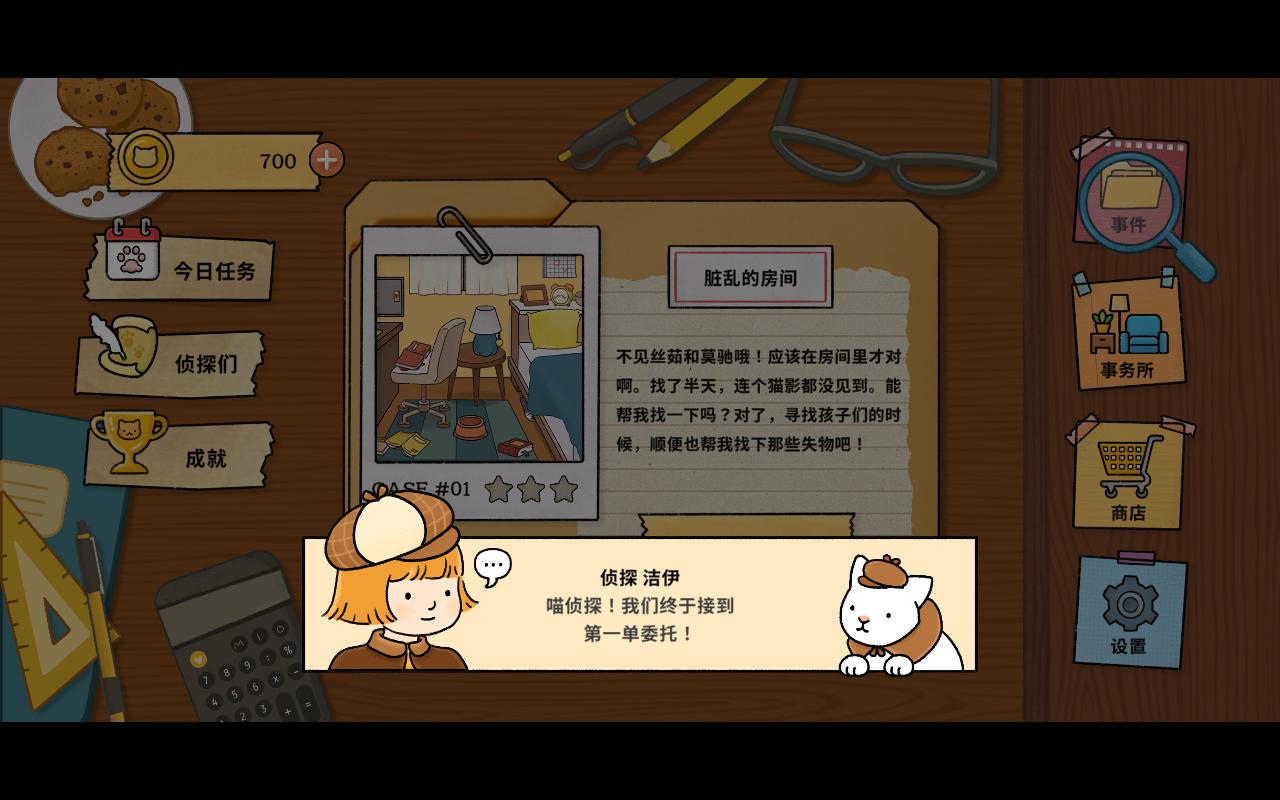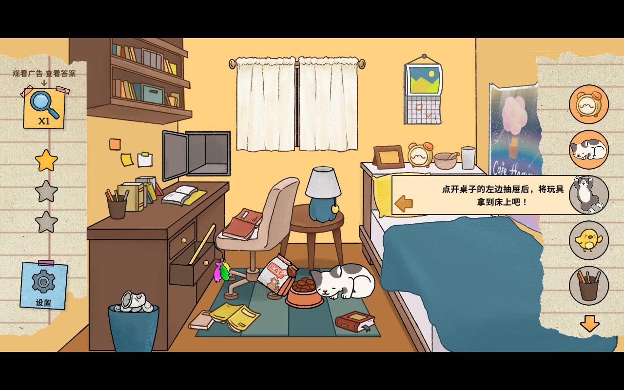 密欧侦探寻找隐藏的猫游戏给玩家破解成了大量的金币,这是一款带有寻物解谜的经营游戏,玩家可以在不同的场所中寻找猫和物品,测试您的眼力,同时还有有趣的谜题,您可以解锁各种家具来装饰事务所,很多的客户等待您前来帮忙;
