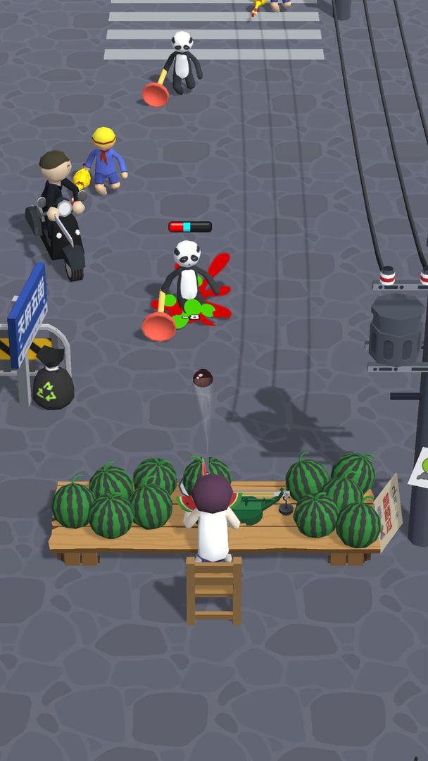 西瓜摊主大战买瓜人是一款非常魔性沙雕的休闲策略小游戏,游戏的画面简洁,脑回路非常的清奇,玩法规则也是比较的简单,在这里你将化身为一名西瓜摊主,需要守卫自己的西瓜摊,与街头混混斗到底。